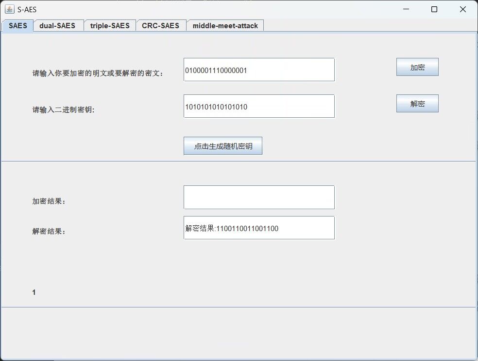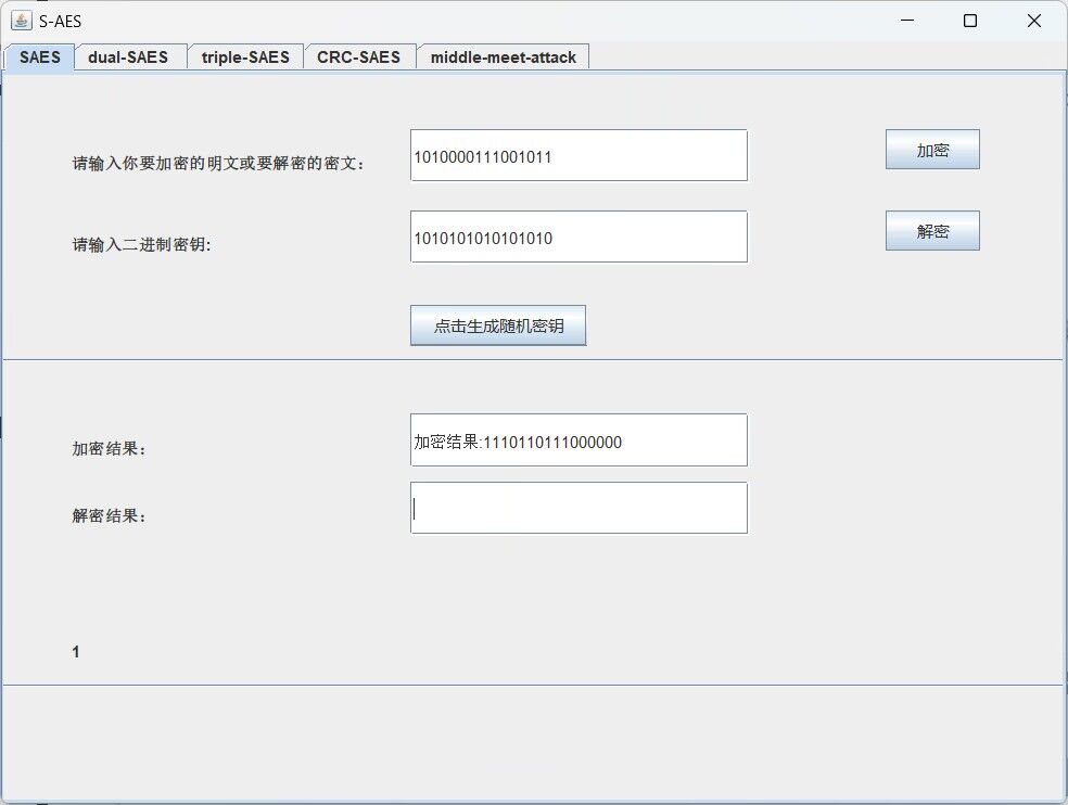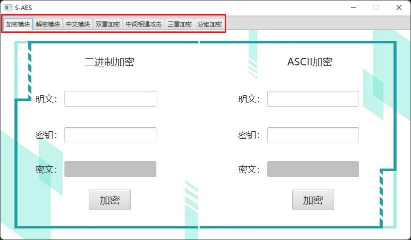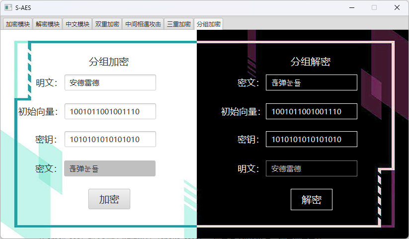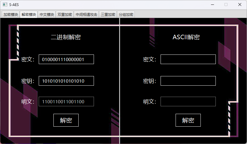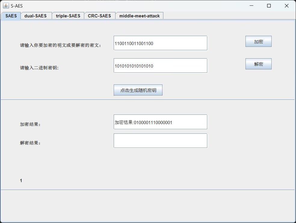 题目: 根据S-AES算法编写和调试程序,提供GUI解密支持用户交互。输入可以是16bit的数据和16bit的密钥,输出是16bit的密文。