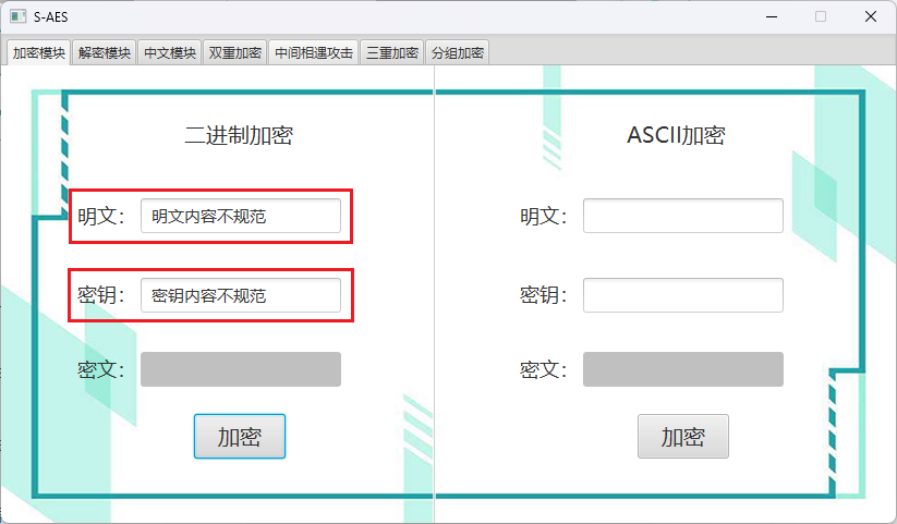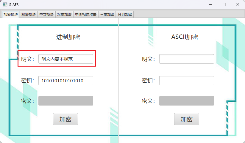 ① 当加密时输入明文不符合长度要求时(解密时同理);