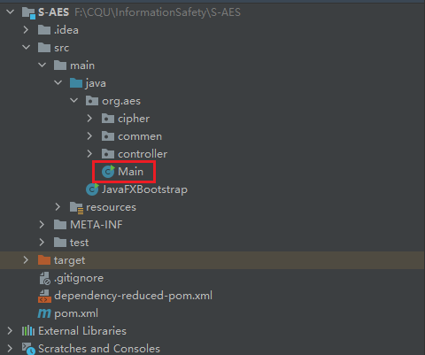 - 选择src/main/java/org.aes/Main.java点击运行即可。