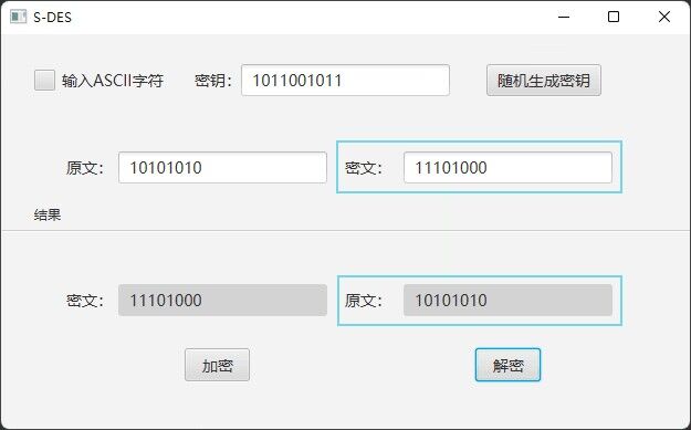 ④实例演示:通过示例演示来展示程序的实际运行,以帮助您更好地理解S-DES加解密的过程。